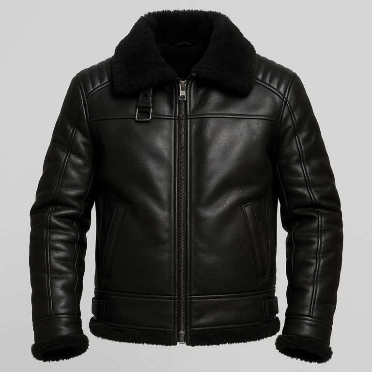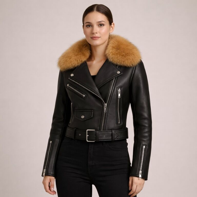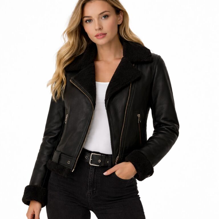 Premium Women Black Shearling Biker Leather Jacket – Export Quality