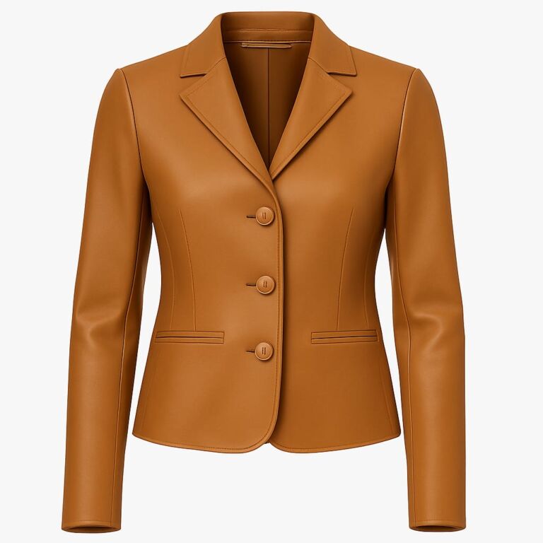 Women Tan Leather Blazer – Elegant Tailored Fit