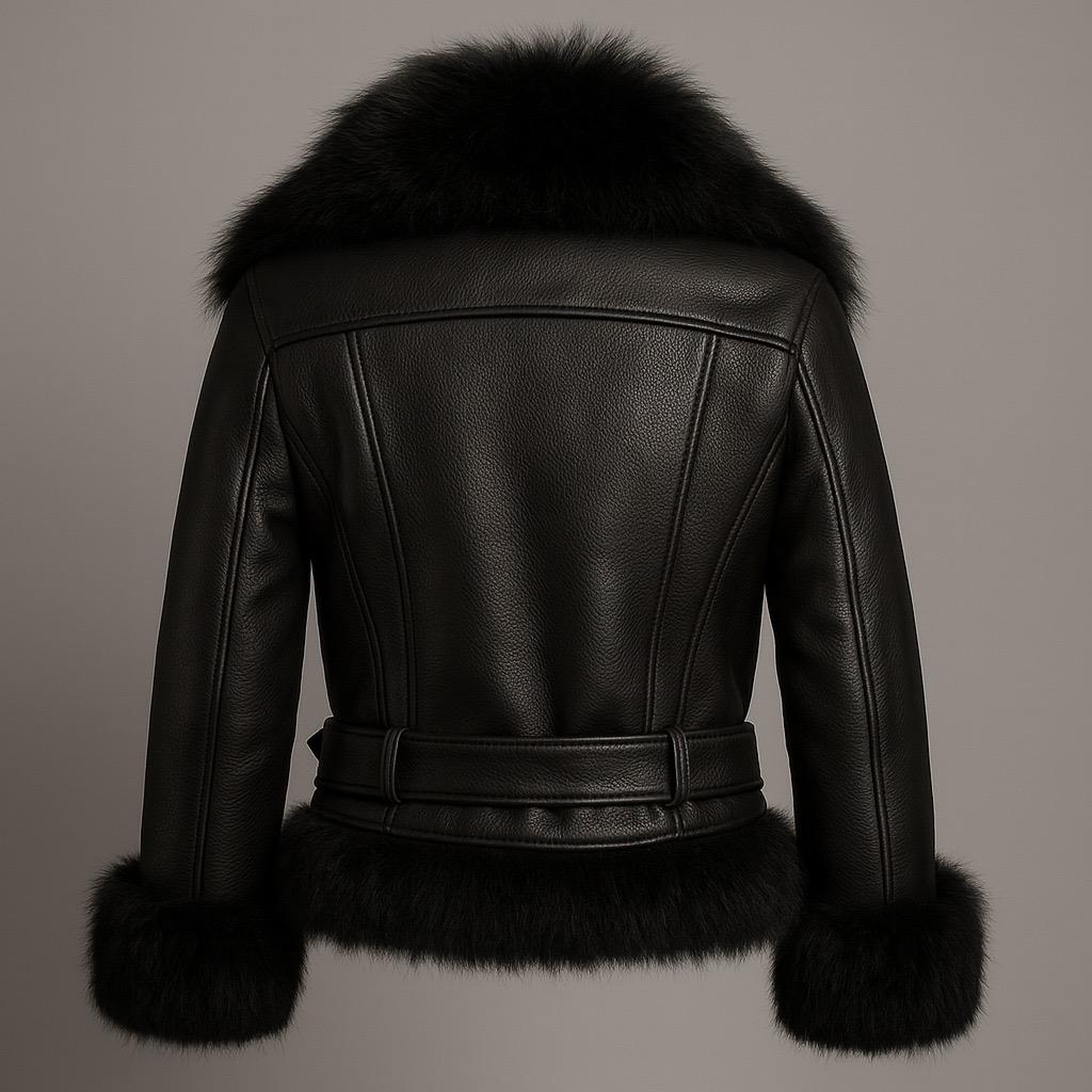 Perfect for winter styling, street fashion, and upscale casual wear, this fur leather jacket blends edgy moto design with feminine sophistication. Ideal for fashion brands, private labels, and wholesale buyers looking for statement outerwear pieces.